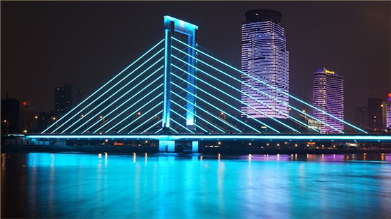 橋體照明在充分考慮岸上、橋上、車行、步行等不同人群的觀看范圍后,最終確定了照明方案,強調(diào)其景觀效果,達到視覺美學,使人們無論是在遠距離遙看,還是近距離觀看,都能夠感受到橋體所帶來的視覺美感。