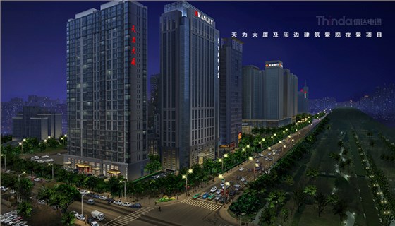 信達電通照明設計團隊現(xiàn)場實勘,發(fā)現(xiàn)目前西安天力大廈建筑夜景照明缺失,無法形成整體的夜景照明體系,而且西安天力大廈的建筑照明手法單一,沒有層次感。針對現(xiàn)場實勘情況和目前的夜景照明存在的問題,信達電通照明設計團隊對西安天力大廈做了整體的建筑景觀亮化照明設計,首先,改善目前的照明缺失,增加天力大廈建筑立面及頂部的照明增加夜景照明的層次感,強調天際線效果。